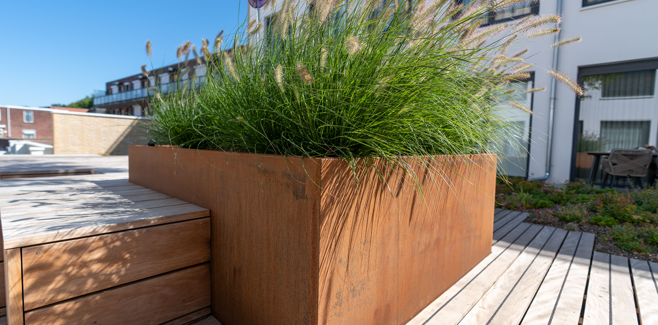 - Donice ze stali kortenowskiej są bardzo wytrzymałe, odporne na warunki atmosferyczne i trwałe, a przy tym wymagają jedynie nieznacznej konserwacji.