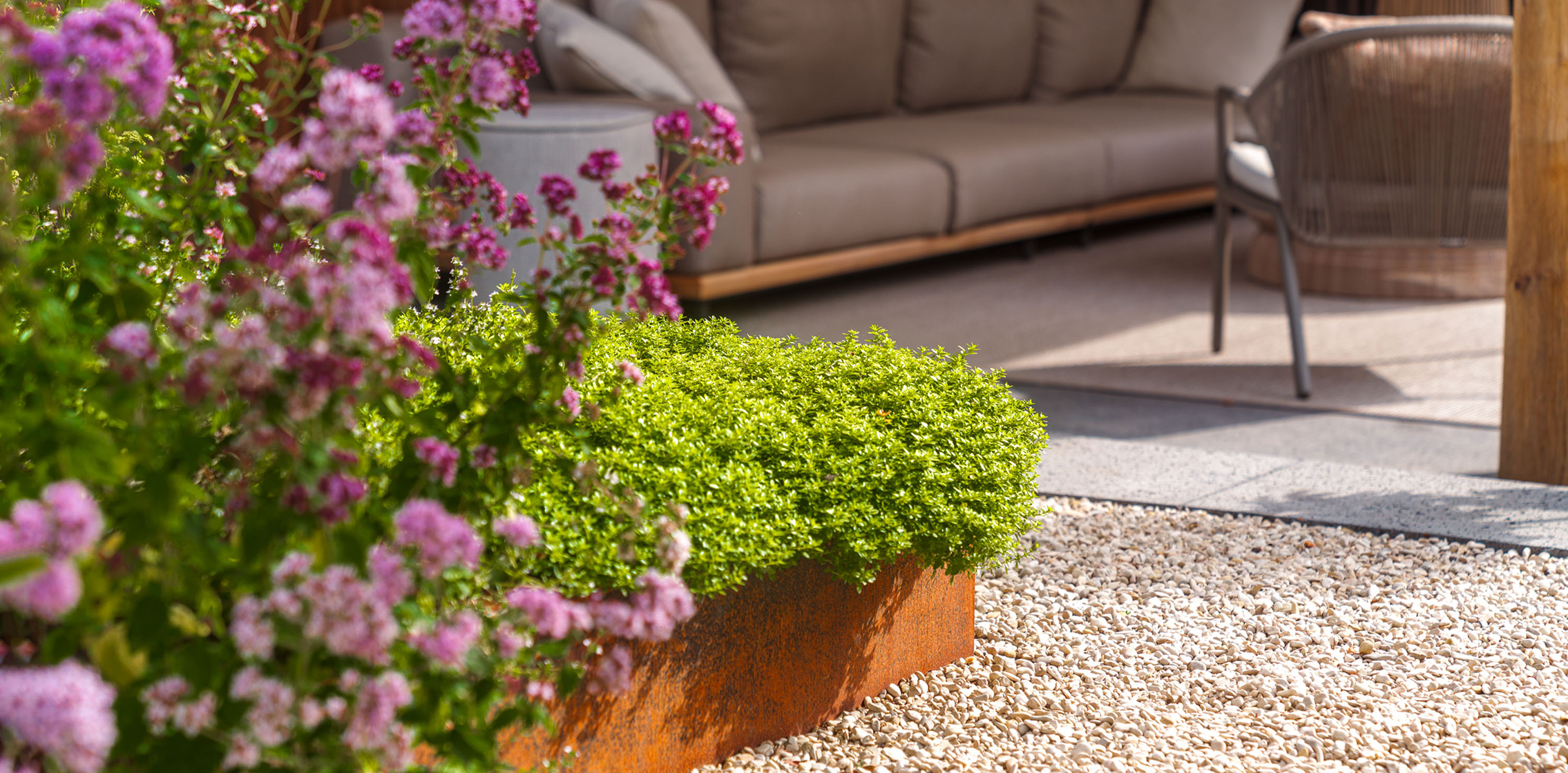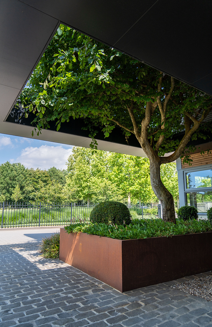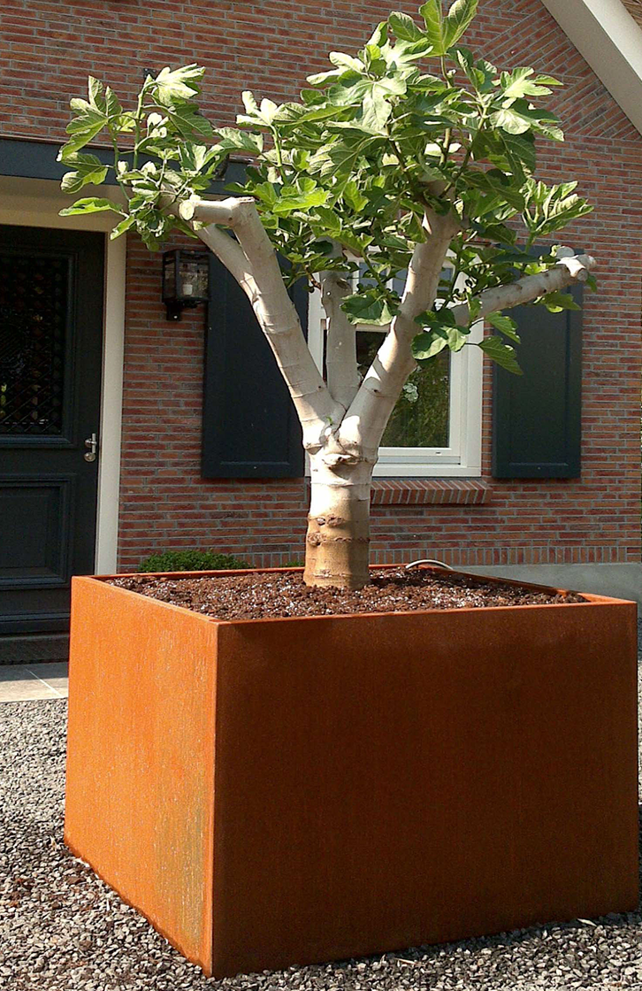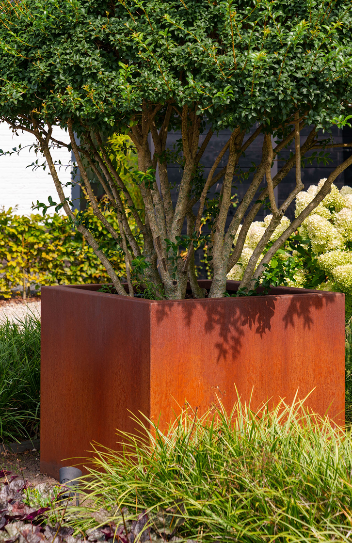 Donica CARREZ ze stali kortenowskiej zapewni przytulną atmosferę oraz będzie wyrazistym akcentem w każdym ogrodzie dzięki pomarańczowo-brązowej patynie na metalu. Patyna ta powstaje dzięki naturalnej warstwie rdzy. Inna nazwa stali kortenowskiej to stal o podwyższonej odporności na warunki atmosferyczne: warunki pogodowe mają pozytywny wpływ na tę donicę.