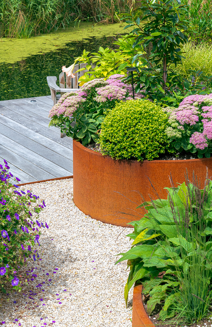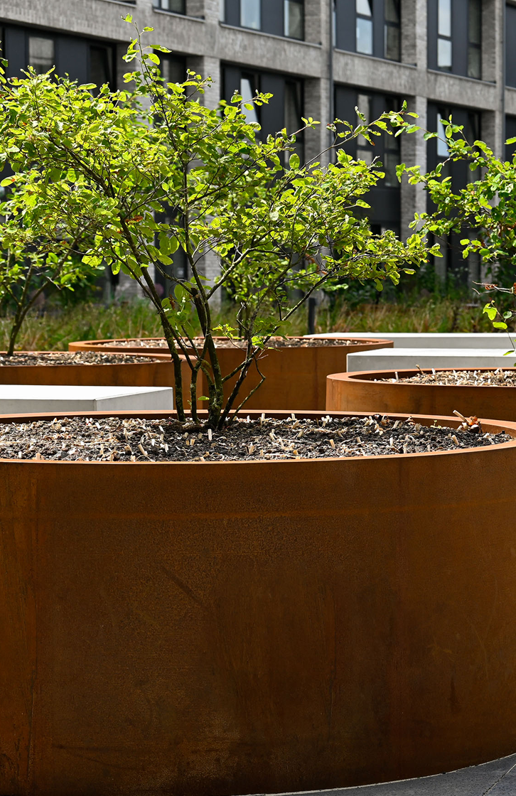 Donica ze stali kortenowskiej CIRCUM nadaje ogrodom wyrazisty, stylowy i ciepły wygląd, dzięki pomarańczowo-brązowej patynie na metalu. Patyna ta powstaje dzięki naturalnej warstwie rdzy. Inna nazwa stali kortenowskiej to stal o podwyższonej odporności na warunki atmosferyczne: warunki pogodowe mają pozytywny wpływ na tę donicę.