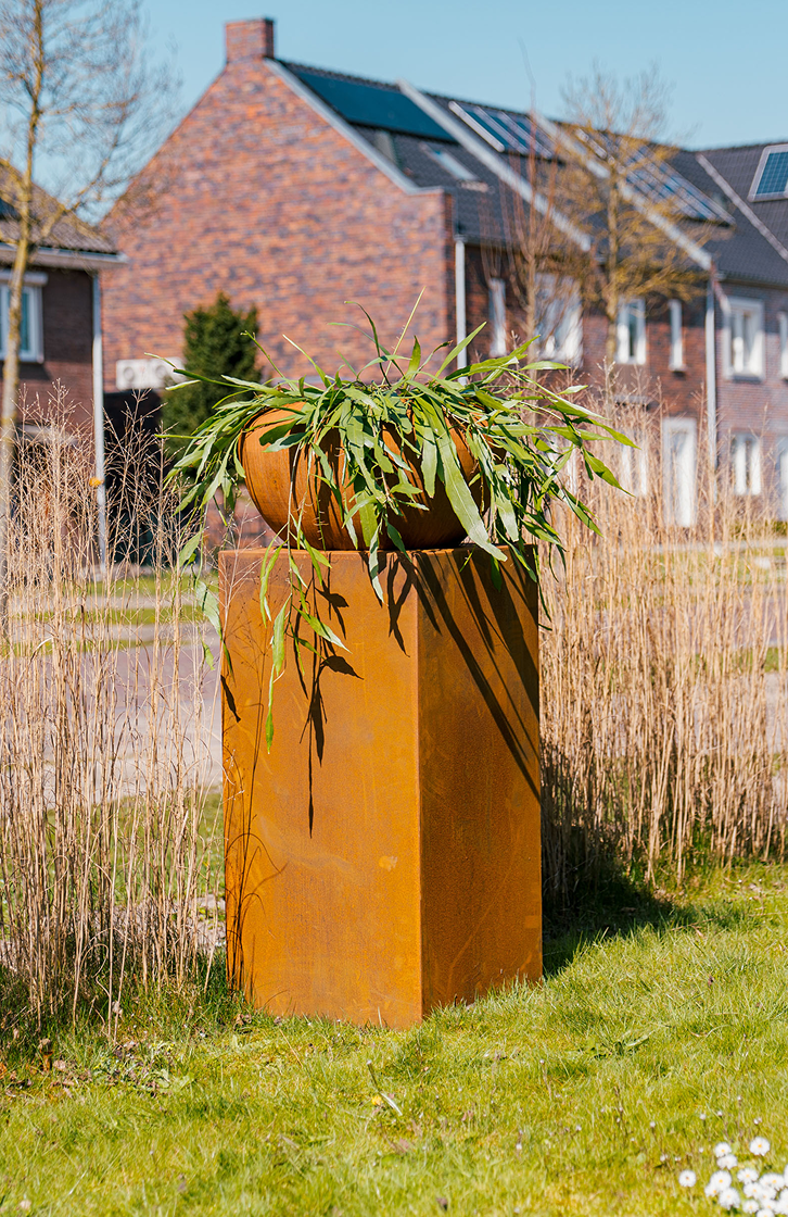 • Nie należy stosować rury przelewowej: w donicy ze stali kortenowskiej nie powinna zatrzymywać się woda. Może to spowodować korozję metalu ze względu na interakcję tlenu i gleby.
